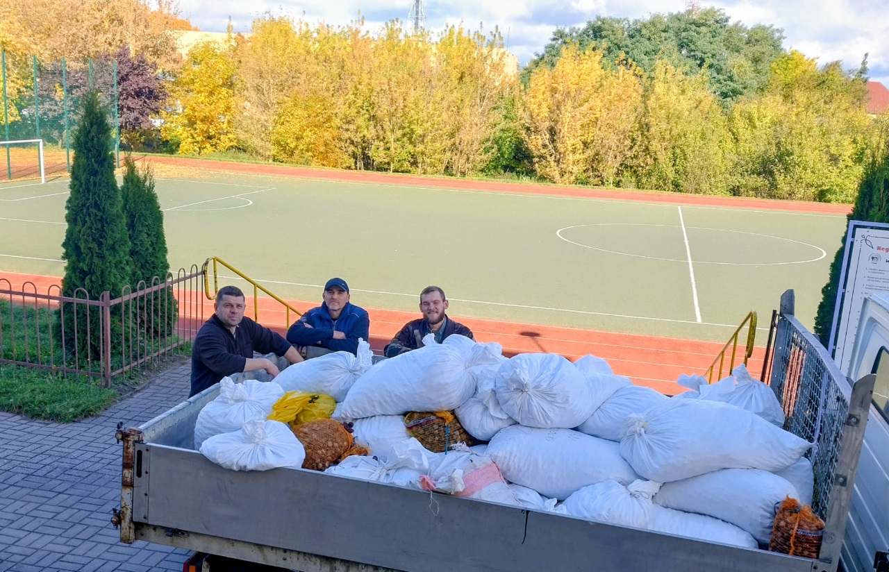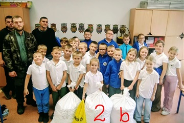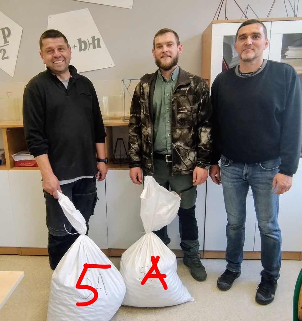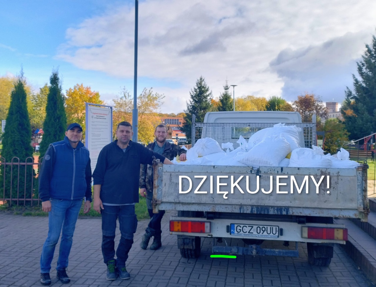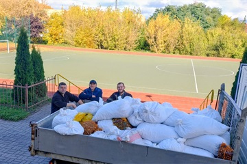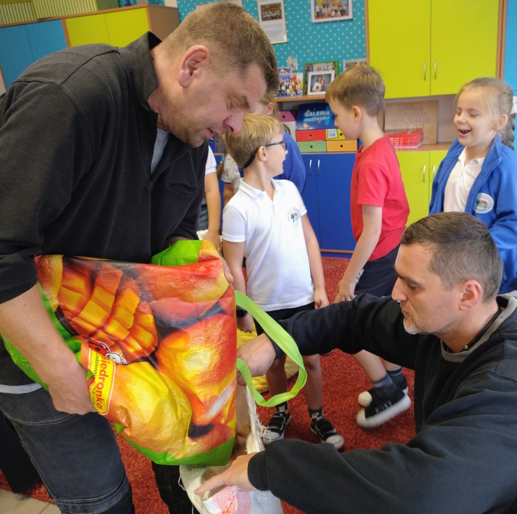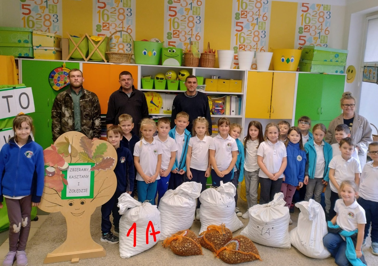 Koledzy Tomasz Pilarski, Paweł Kowalik i Marcin Król, odebrali zebrane kasztany i żołędzie ze Szkoły Podsatwowej nr 1 im. Przyjaciół Ziemi w Człuchowie.
