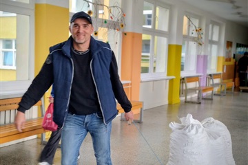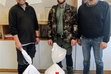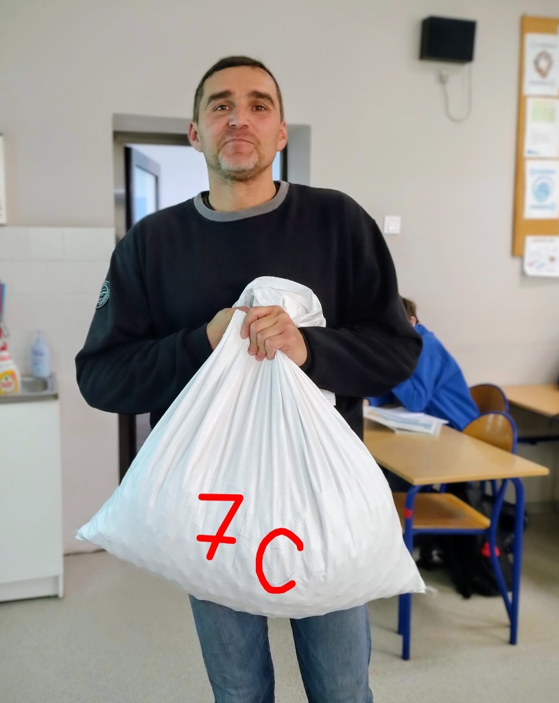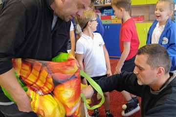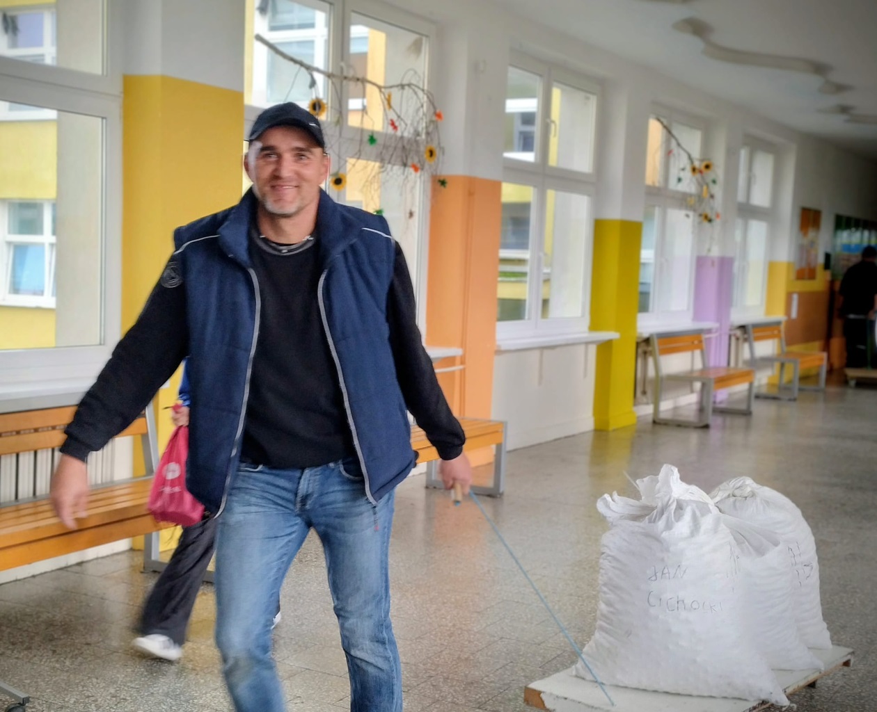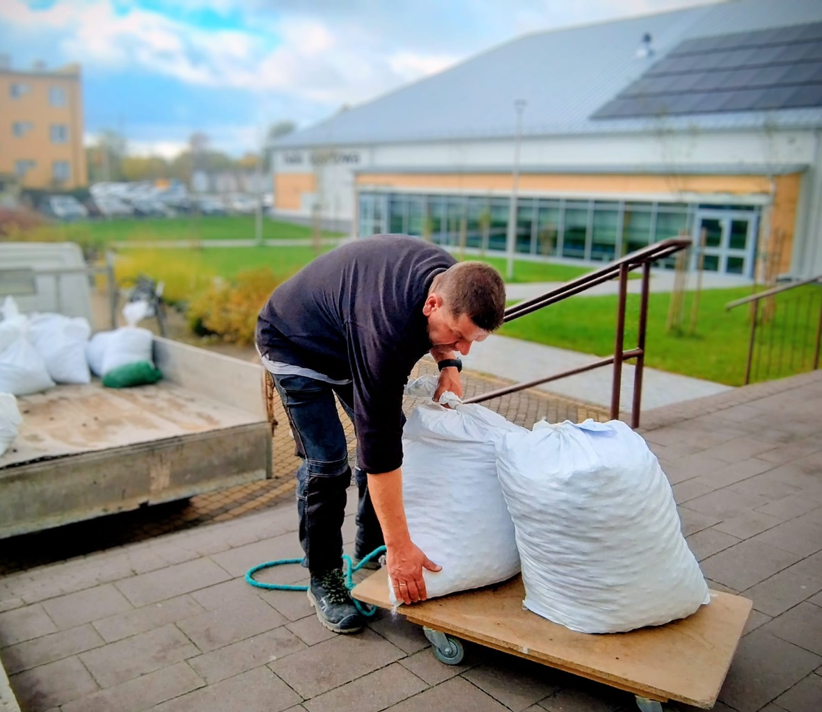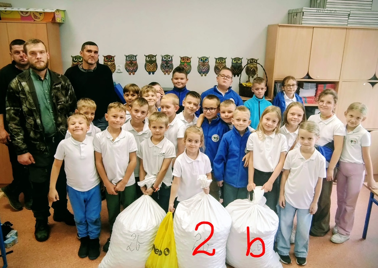 Koledzy Tomasz Pilarski, Paweł Kowalik i Marcin Król, odebrali zebrane kasztany i żołędzie ze Szkoły Podsatwowej nr 1 im. Przyjaciół Ziemi w Człuchowie.