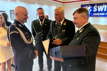 wręczyli Komendantowi Powiatowej Komendy Policji w Człuchowie list gratulacyjny wraz z upominkiem